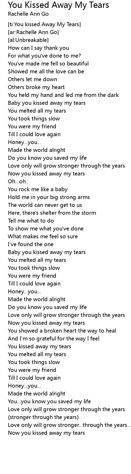 Now you kissed away my tears |