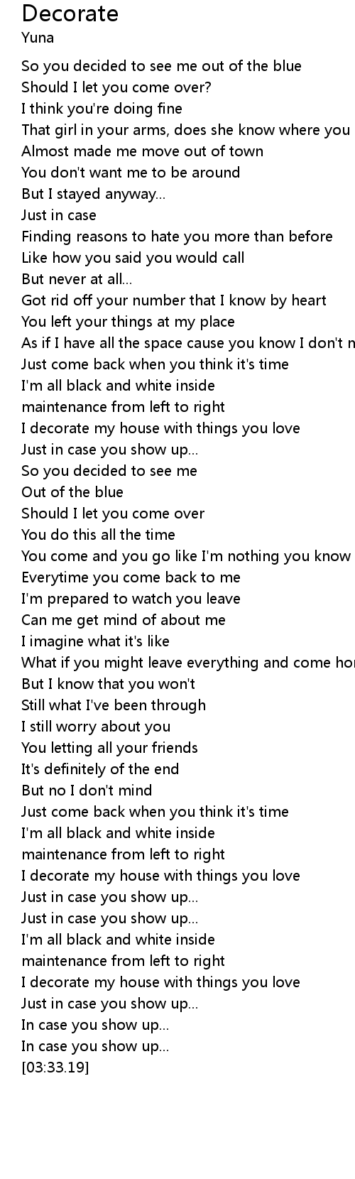 | [00:47.39] | As if I have all the space cause you know I don't mind |