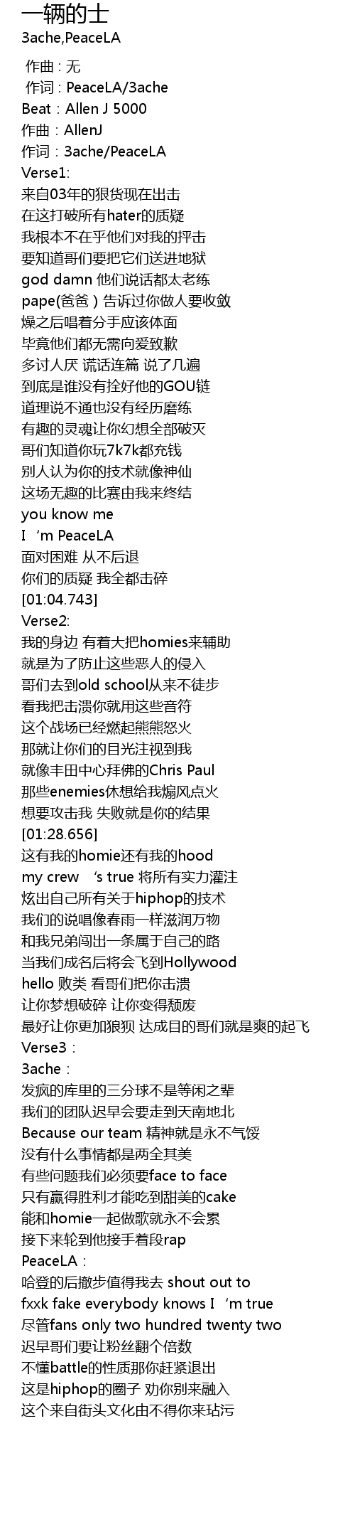 | [00:01.000] | 作词 : PeaceLA/3ache |