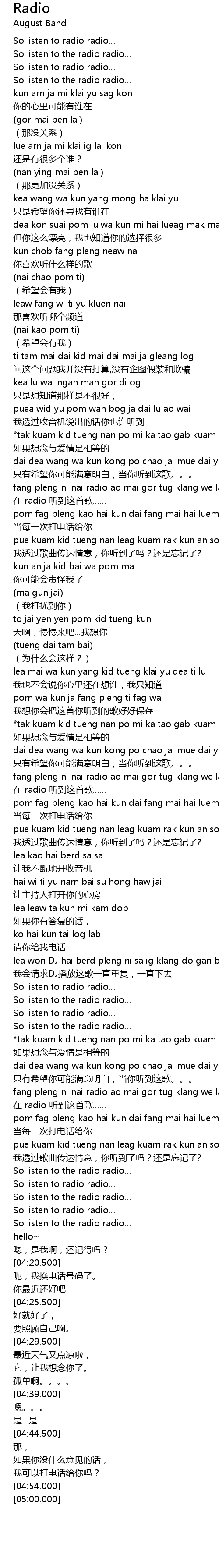 | [03:29.900] | fang pleng ni nai radio ao mai gor tug klang we la ti to |