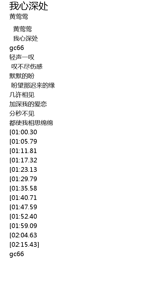 | [02:57.48][01:23.13] | chang ting ni xiao xi |