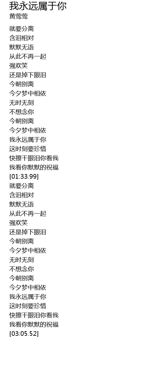 | [01:08.33] | wǒ yǒng yuǎn shǔ yú nǐ |