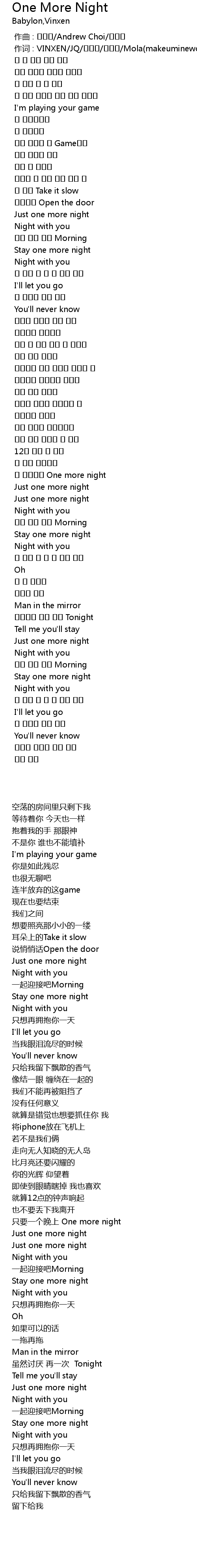 | [01:57.077] | 딱 하룻밤만 One more night |