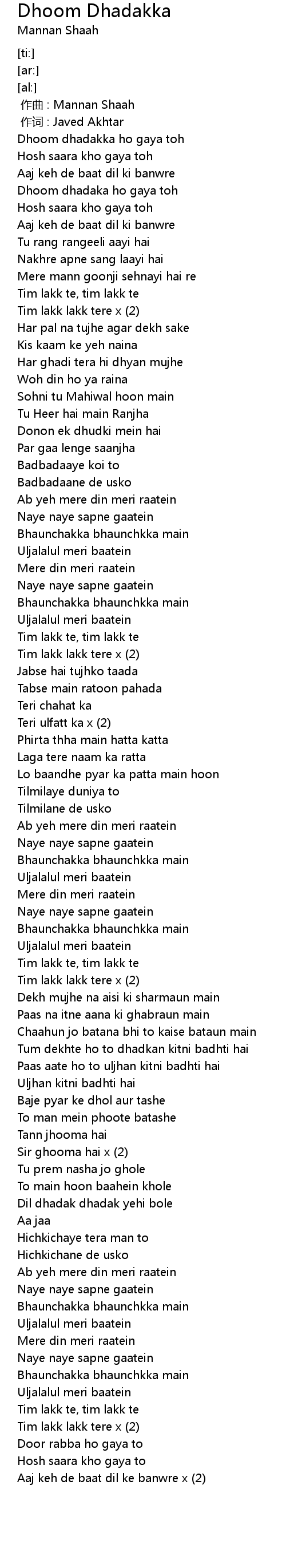 | [00:01.000] | 作词 : Javed Akhtar |
