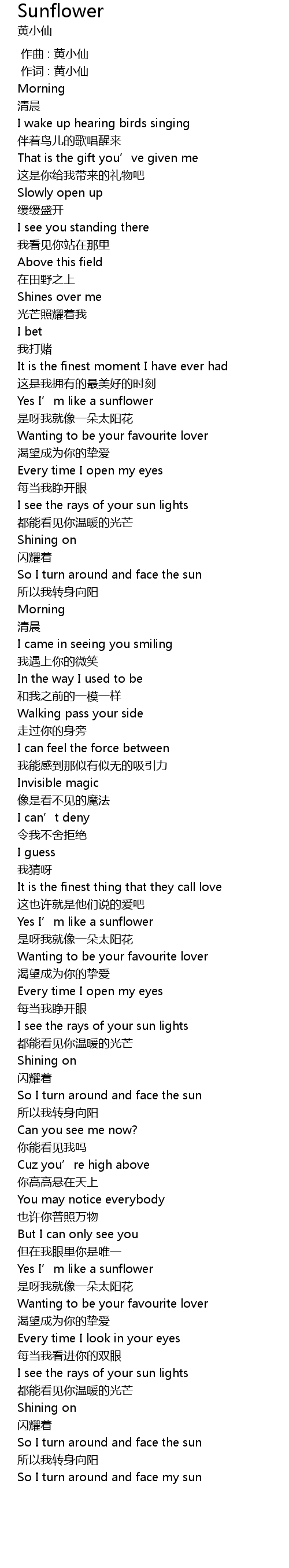 | [02:38.671] | shì ya wǒ jiù xiàng yī duǒ tài yáng huā |