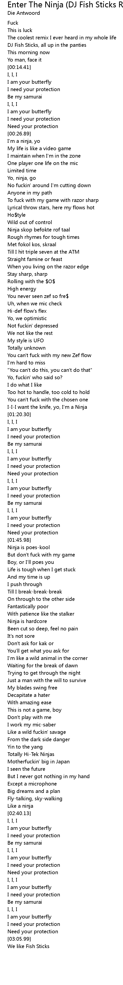 Enter The Ninja (DJ Fish Sticks Remix) Lyrics