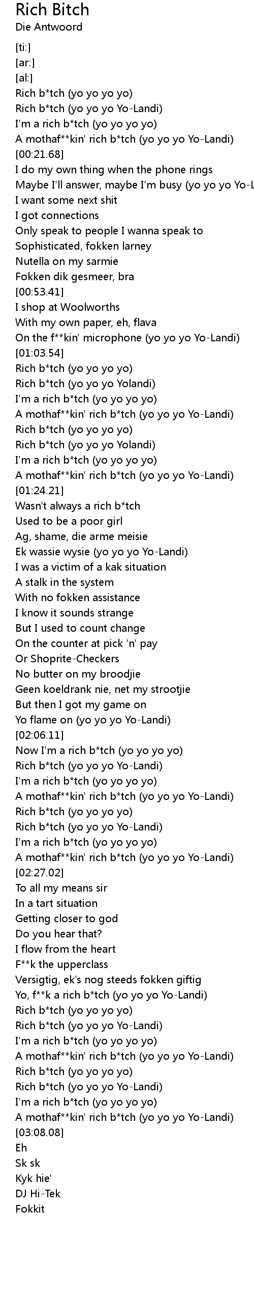 A mothaf**kin' rich b*tch (yo yo yo Yo-Landi) |