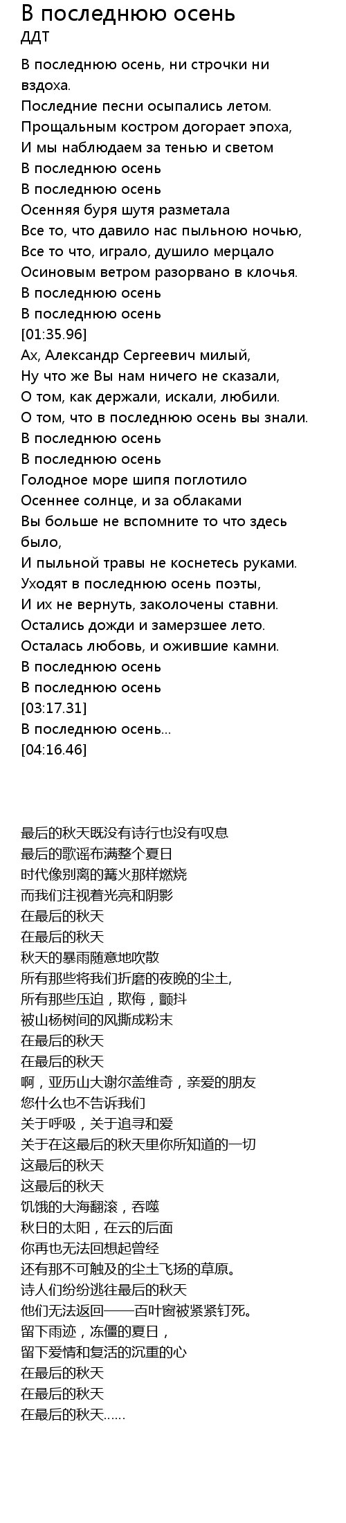 [00:32.96] В последнюю осень, ни строчки ни вздоха.