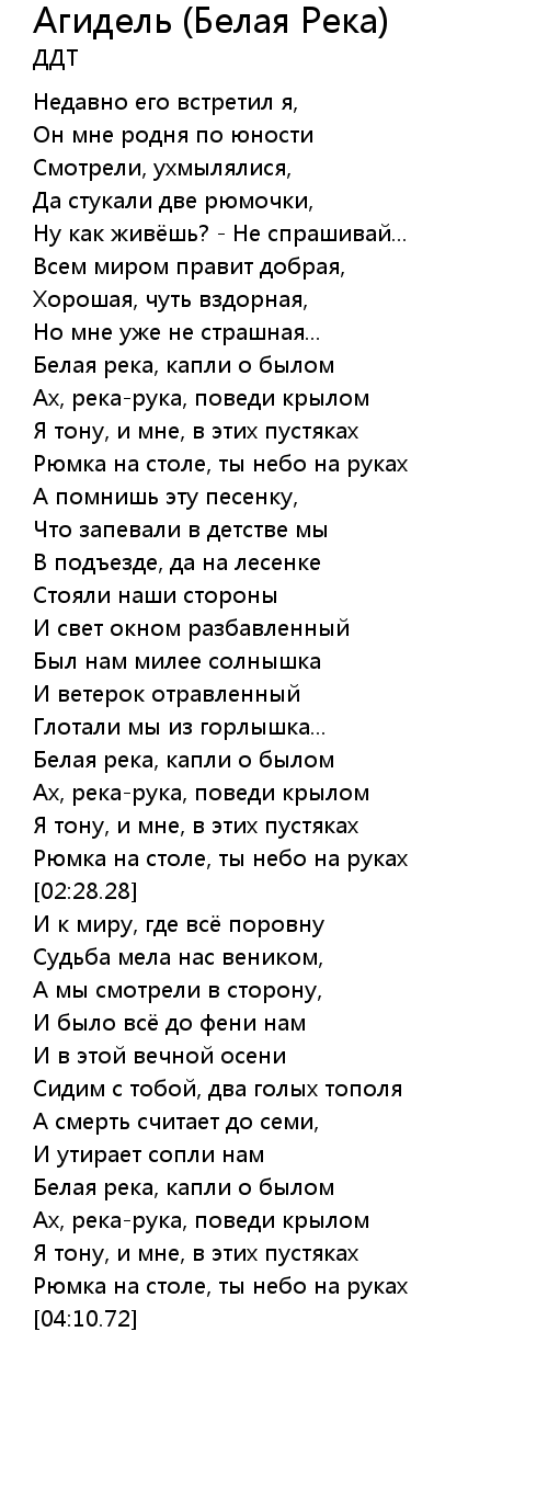 [00:43.76] Белая река, капли о былом