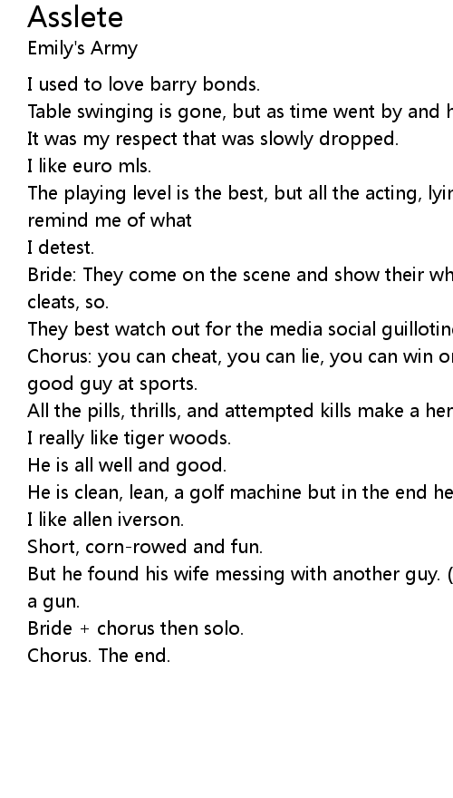 Chorus: you can cheat, you can lie, you can win or not try but you can't be a good guy at sports. |