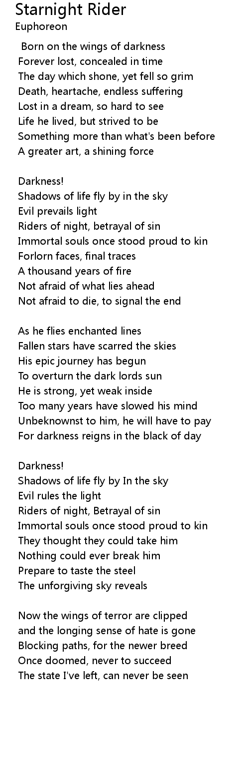 | Riders of night, betrayal of sin | |