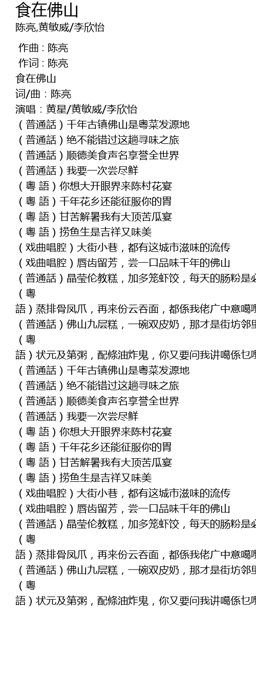 | [00:01.21] | 食在佛山 |