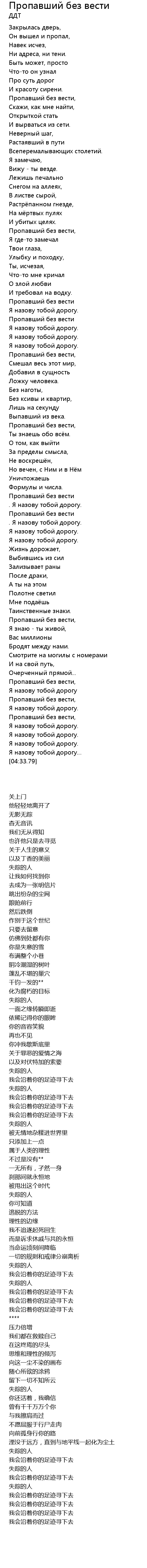 | [01:39.58] | Пропавший без вести |