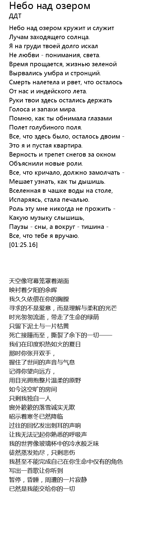 Небо над озером кружит и служит |
