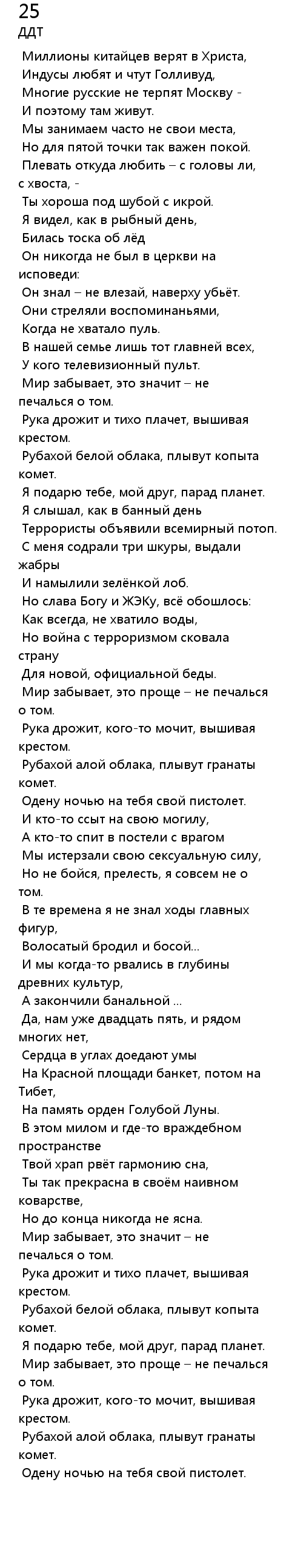 Да, нам уже двадцать пять, и рядом многих нет, |