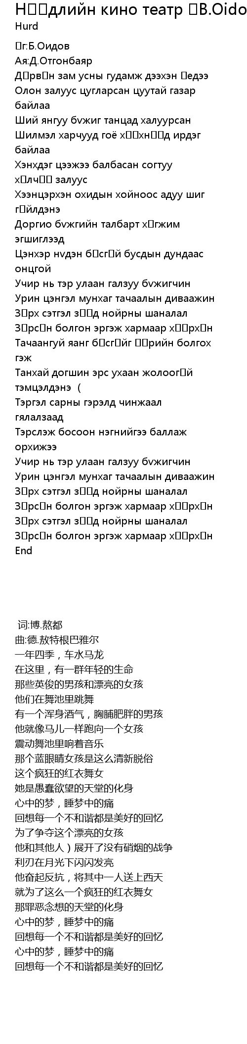 B. Oidov D. Otgonbayar Nüü dliin kino teatr Lyrics