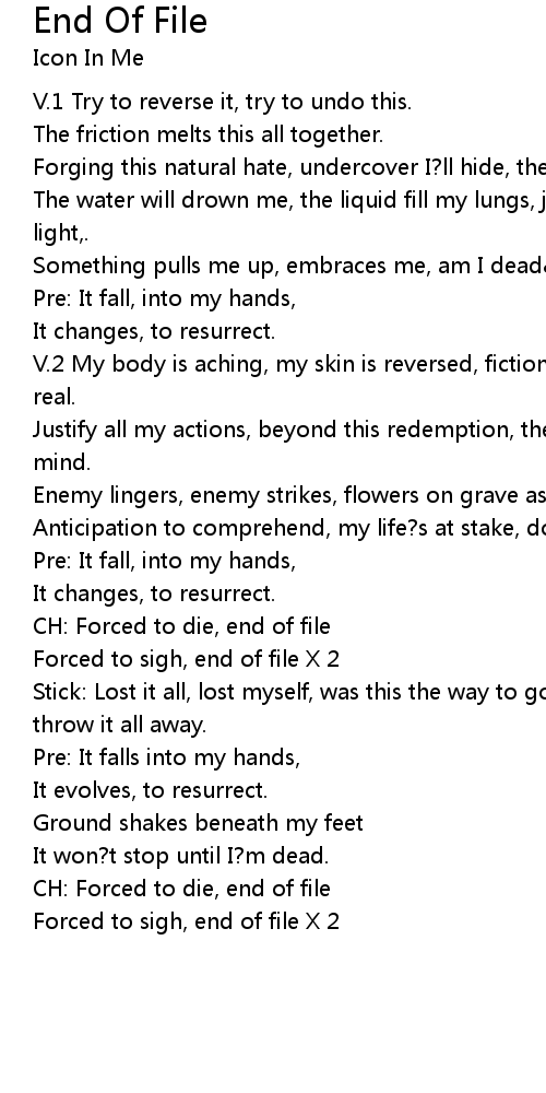 | V. 2 My body is aching, my skin is reversed, fiction or is this here for the real. | |