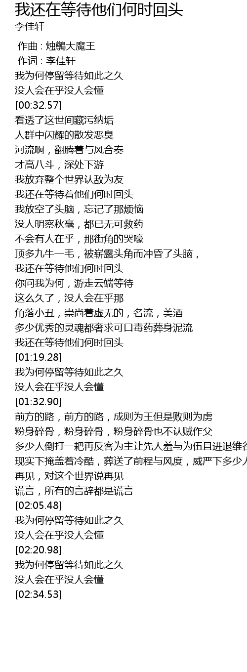 | [00:43.98] | 我还在等待着他们何时回头 |