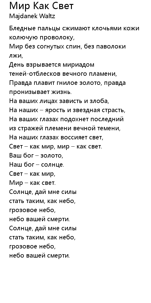 Свет – как мир, |