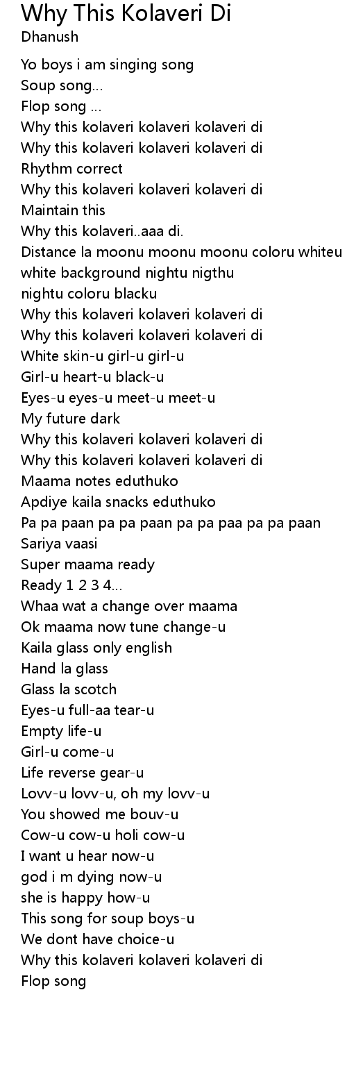 | [03:31.02] | Why this kolaveri kolaveri kolaveri di |