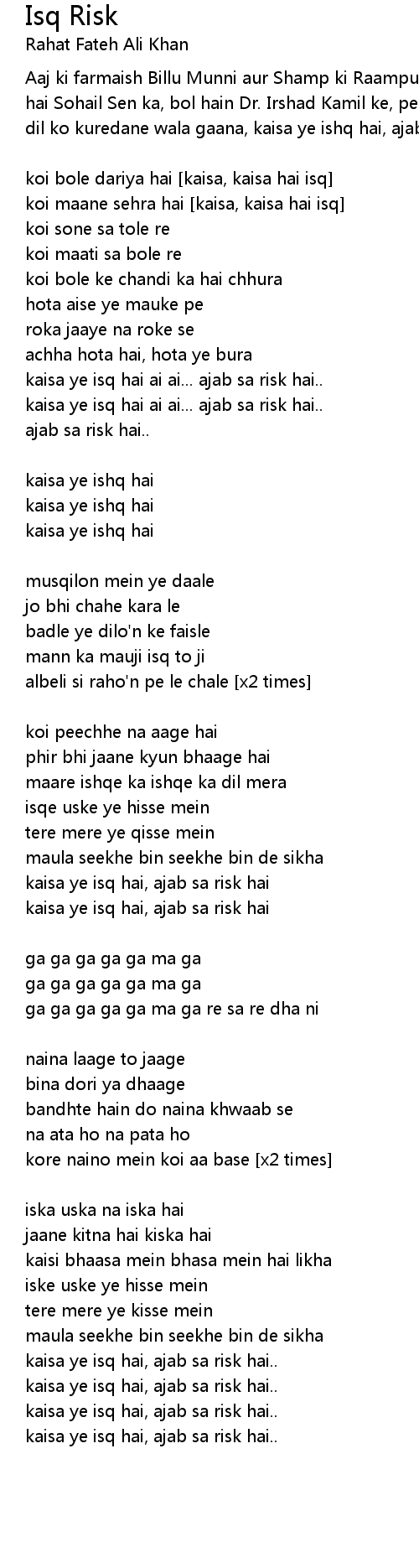 kaisa ye isq hai ai ai... ajab sa risk hai.. |
