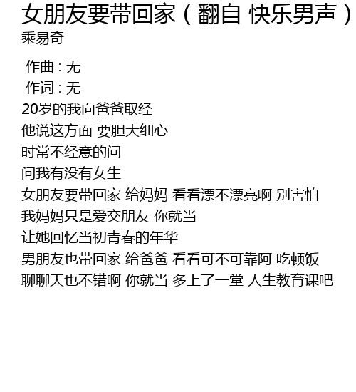 | [00:57.49] | 女朋友要带回家 给妈妈 看看漂不漂亮啊 别害怕 |