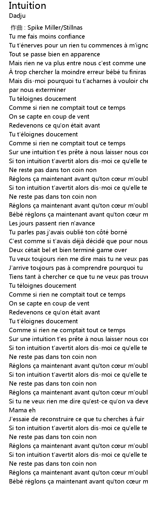 | [01:53.85] | Si ton intuition t'avertit alors dis-moi ce qu'elle te dit |