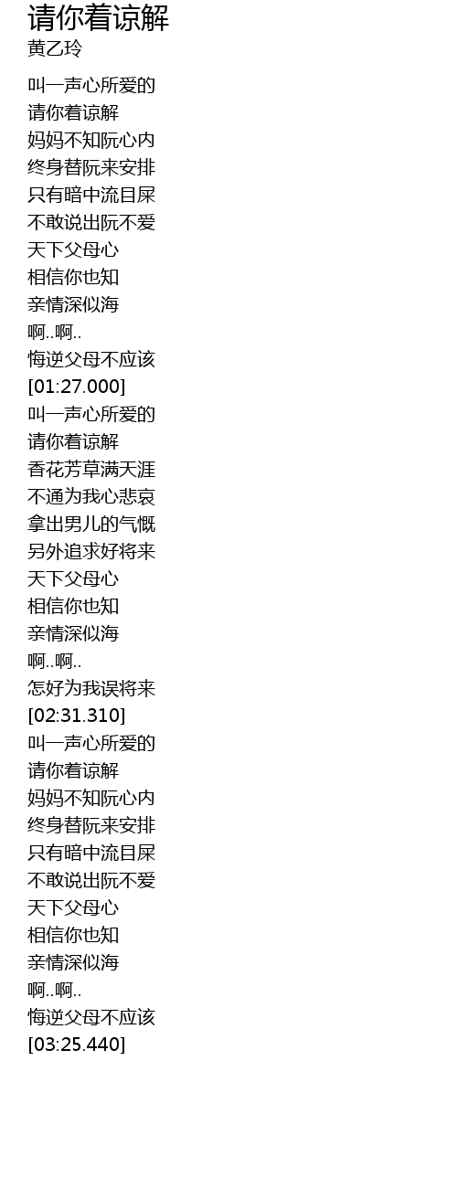 | [00:42.380] | qǐng nǐ zhe liàng jiě |