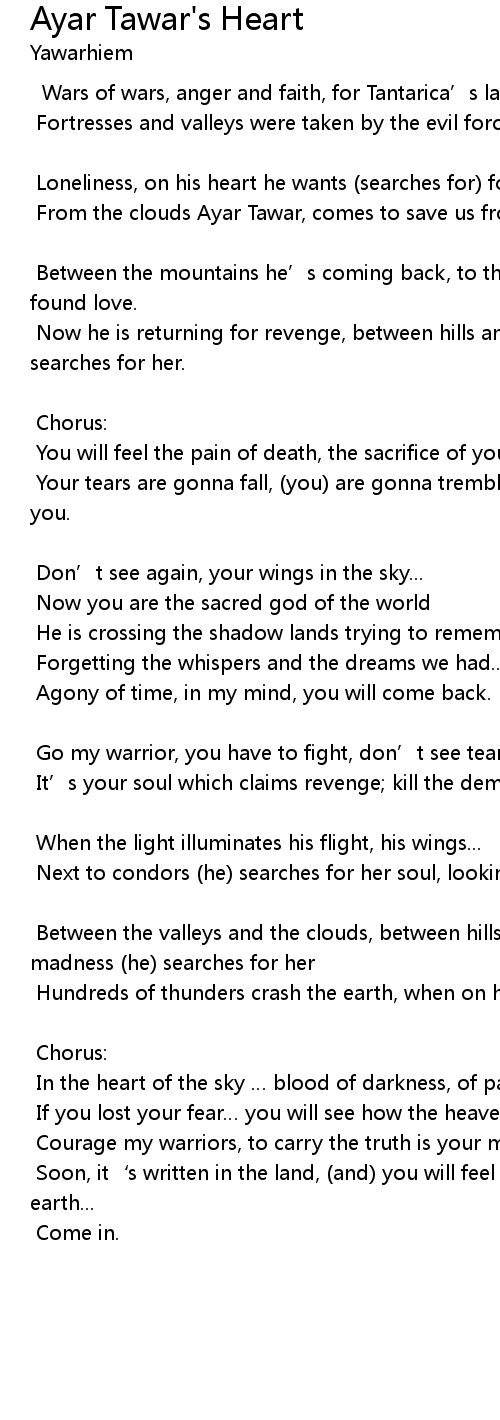 | In the heart of the sky blood of darkness, of passion and faith. | |