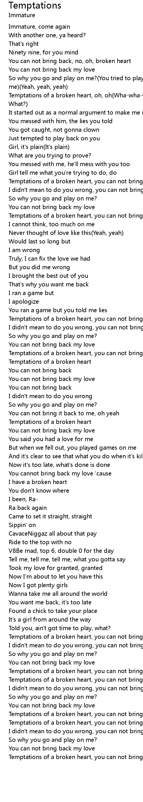Temptations of a broken heart, oh, oh(Wha-wha-what?)(What? What? What? What? What?) |