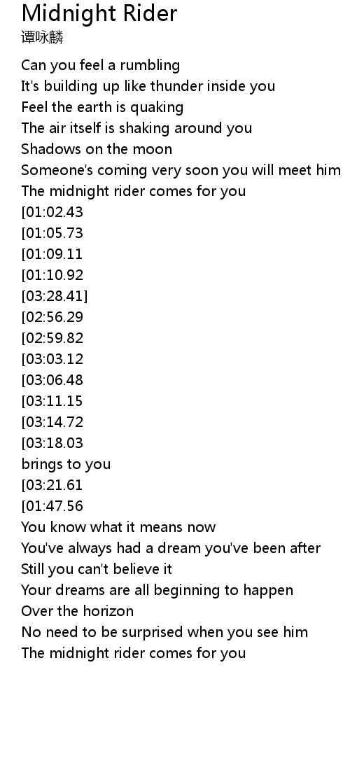 Midnight rider, midnight rider |