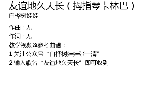 | Song | 友谊地久天长(拇指琴卡林巴) |