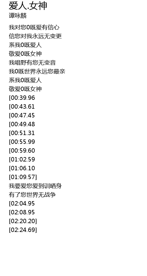 | [01:53.70][01:06.10] | 敬爱0既女神 |