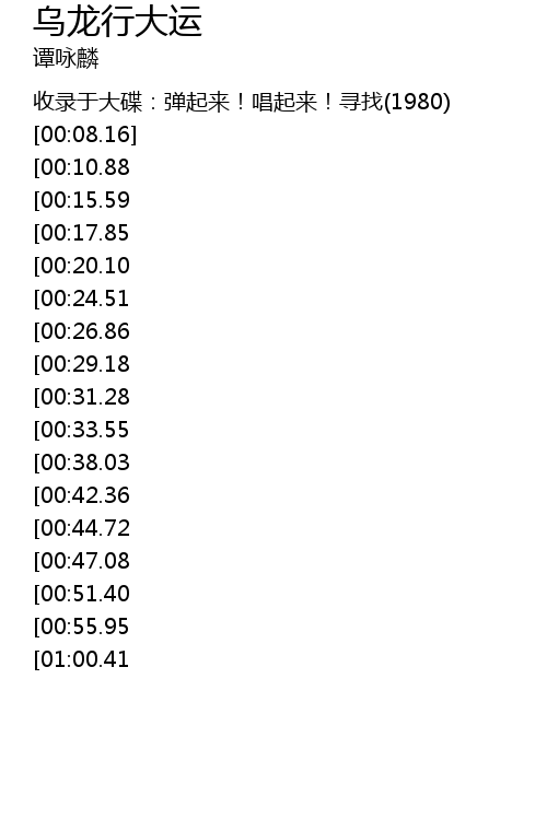 | [02:01.65][00:55.95] | 行运行运行大运 乌龙行大运 |