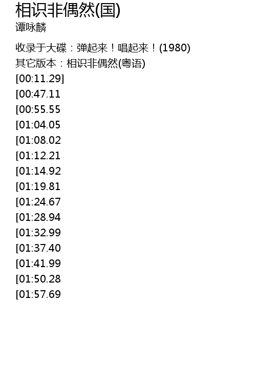 | [00:09.46] | 其它版本:相识非偶然(粤语) |
