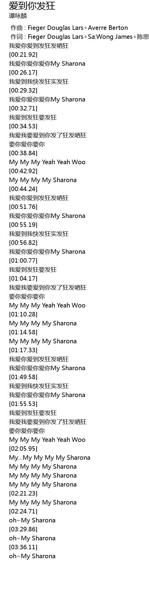 | [01:43.96] | 我爱你爱到发狂发哂狂 |
