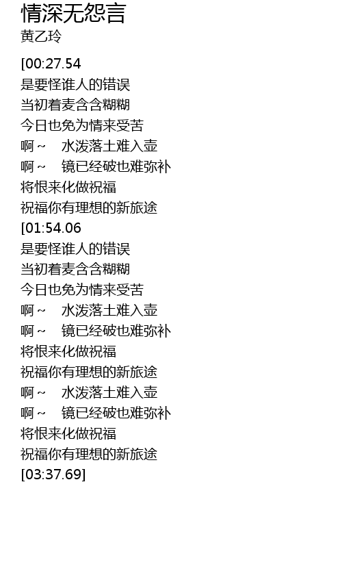 | [01:10.01] | 啊~ 镜已经破也难弥补 |