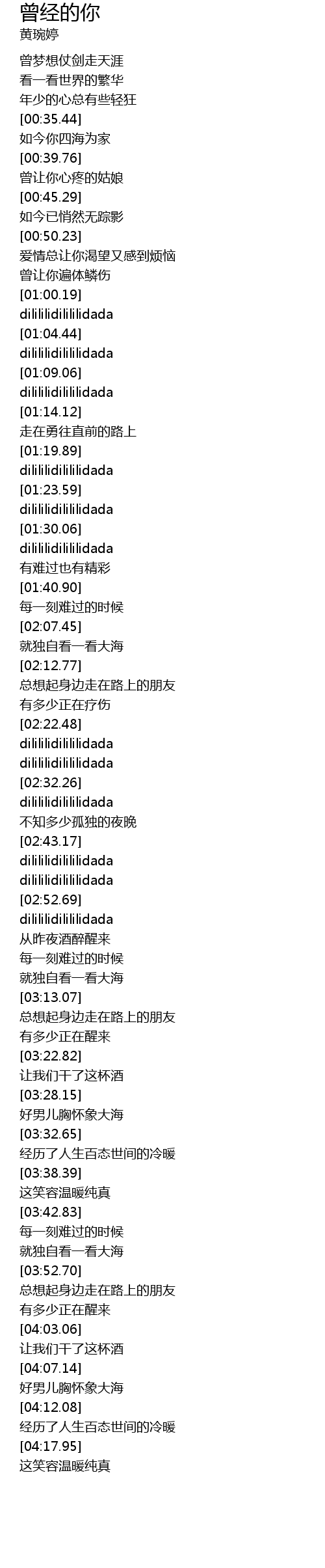 | [04:13.57] | 经历了人生百态世间的冷暖 |