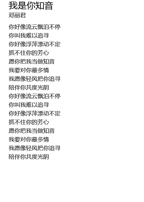 | [00:59.780] | 愿你把我当做知音 |
