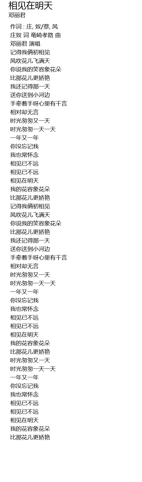 | [00:18.00] | 邓丽君 演唱 |