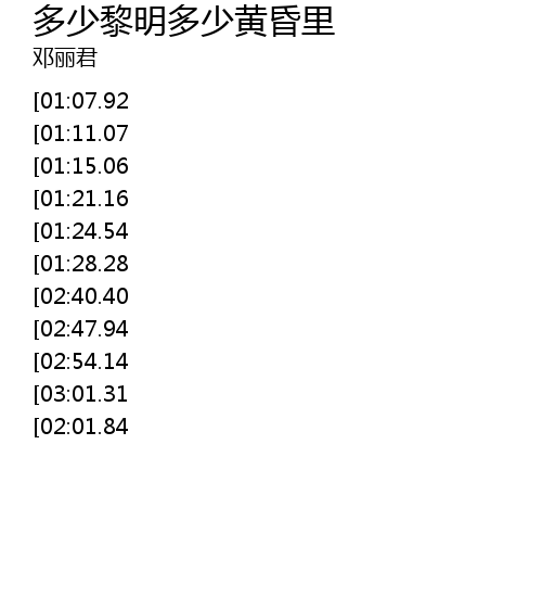 | [03:14.42][02:47.94][01:41.63][00:48.86] | duō shǎo lí míng duō shǎo huáng hūn lǐ |