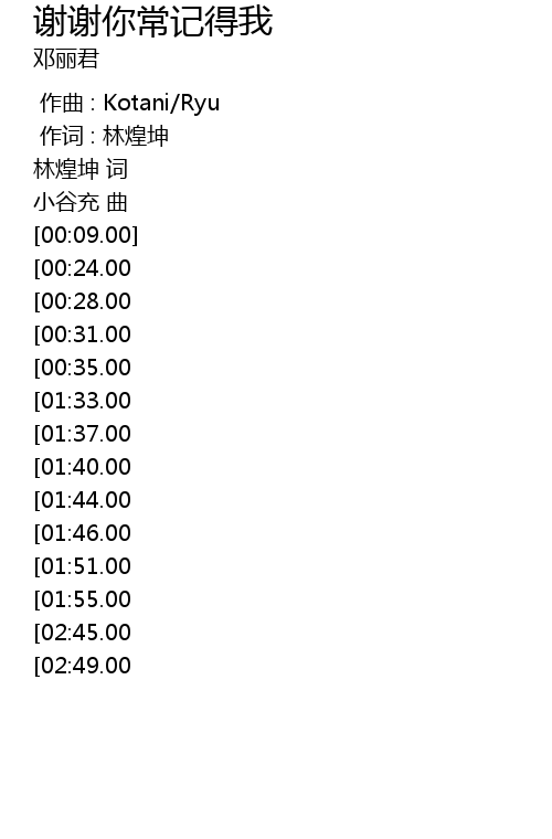 | [01:19.00][00:24.00] | 谢谢你常记得我, |