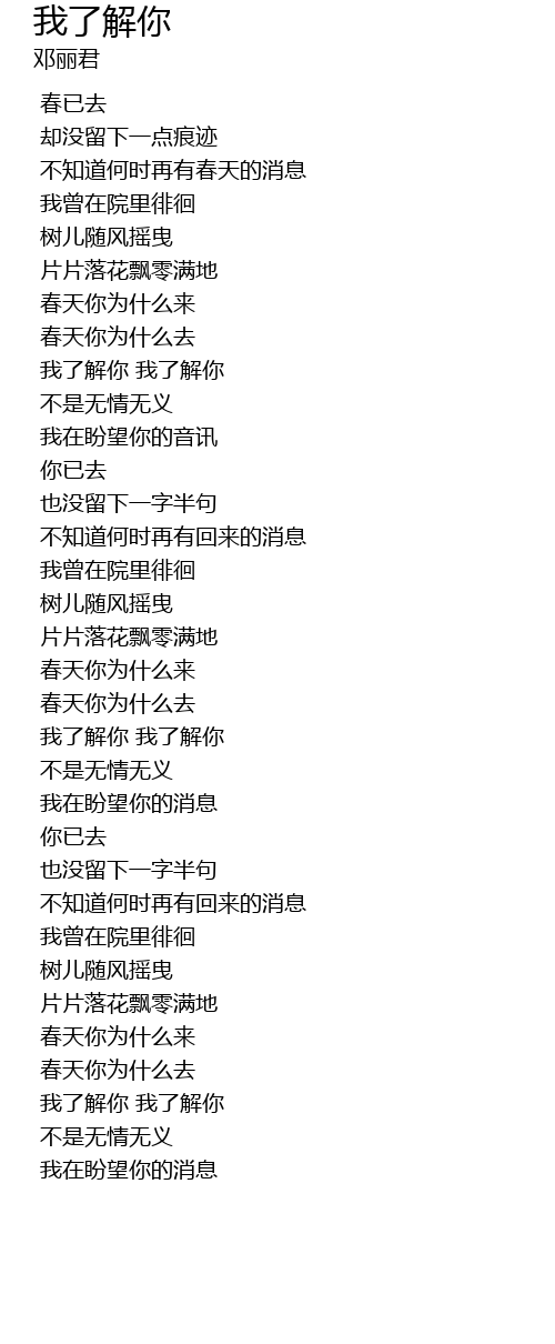 | [00:56.000] | wǒ liǎo jiě nǐ wǒ liǎo jiě nǐ |