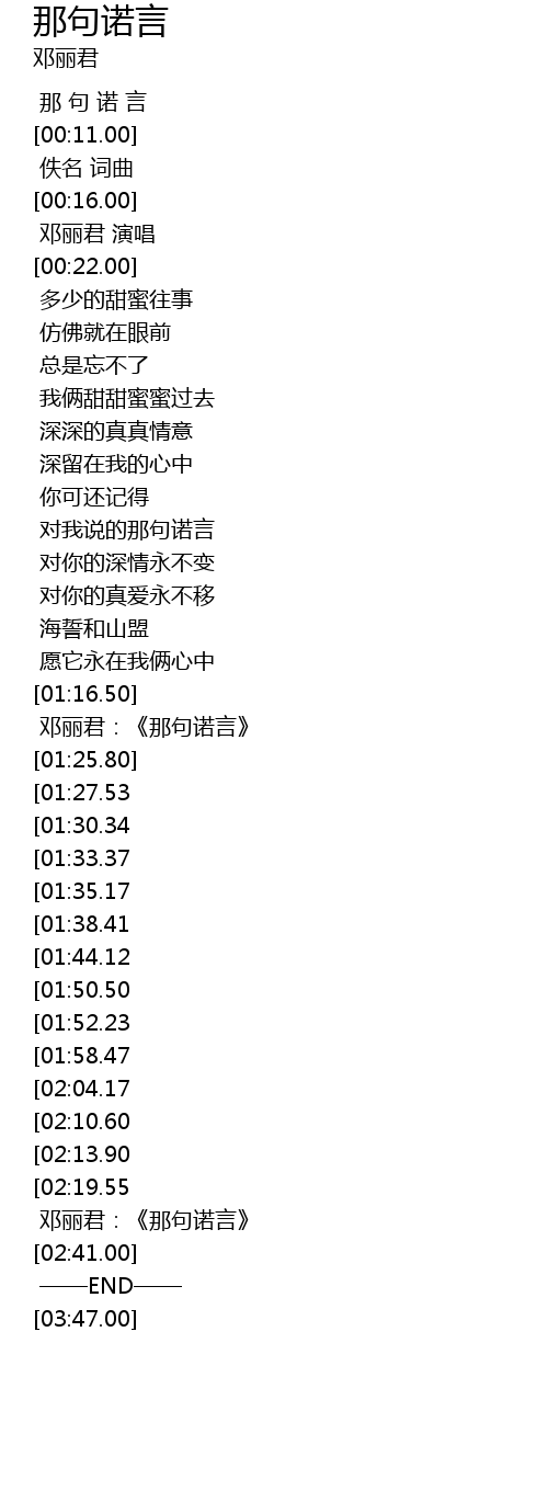 | [02:21.49] | 邓丽君:《那句诺言》 |