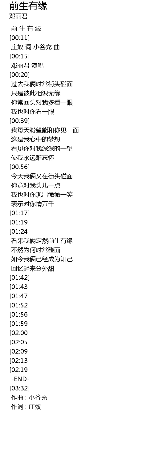 | [00:01] | 前 生 有 缘 |