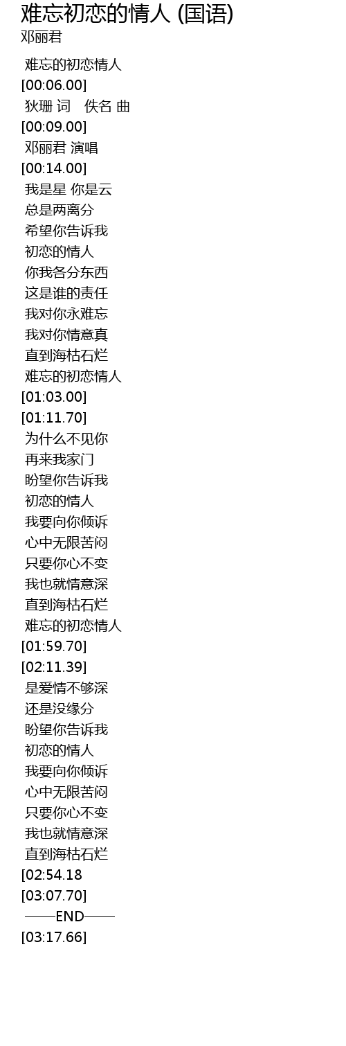 | [02:59.41][02:54.18] | 难忘的初恋情人 |