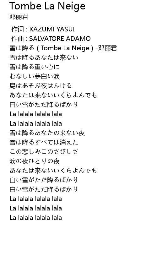 | [00:00.224] | 雪は降る(Tombe La Neige)-邓丽君 |