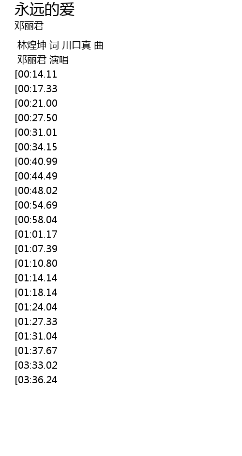 | [03:47.80][03:36.24][01:44.41] | 深深爱我像天长地久 |