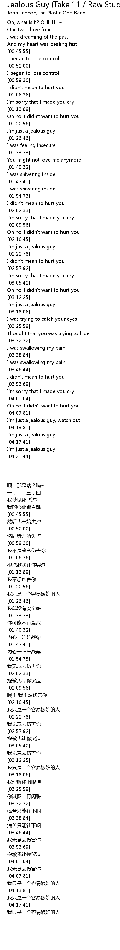 | Song | Jealous Guy (Take 11 / Raw Studio Mix) |