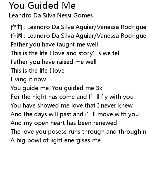 | [00:01.000] | 作词 : Leandro Da Silva Aguiar/Vanessa Rodrigues Gomes Hermesh |